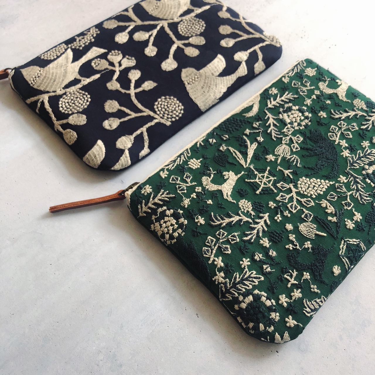 片面は繊細な刺繍生地、もう片面は無地の国産帆布を使用しています。